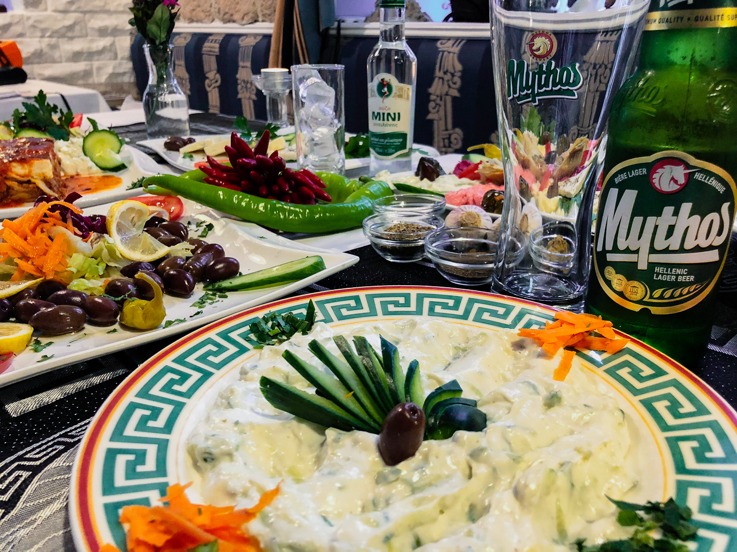 Tsatsiki als Vorspeise, Moussaka als Hauptspeise und dazu ein feines Mythos-Bier und als Dessert griechisches Joghurt mit Walnüssen und Honig – Herz, was willst du mehr? Natürlich bieten wir Ihnen auch viele andere griechische Spezialitäten an. Dazu zählen Klassiker wie Souvlaki, Scampi, Linsensuppe, Fischsuppe, Pita, ein griechischer Bauernsalat, Feta Saganaki, Halloumi vom Grill, Stifado, Gyros, Lammkeulen und vieles mehr. Unsere Speisen lassen die Herzen von Fans der griechischen traditionellen Küche höherschlagen!